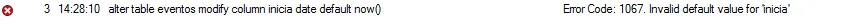 ALTER TABLE eventos MODIFY COLUMN inicia DATE default NOW();