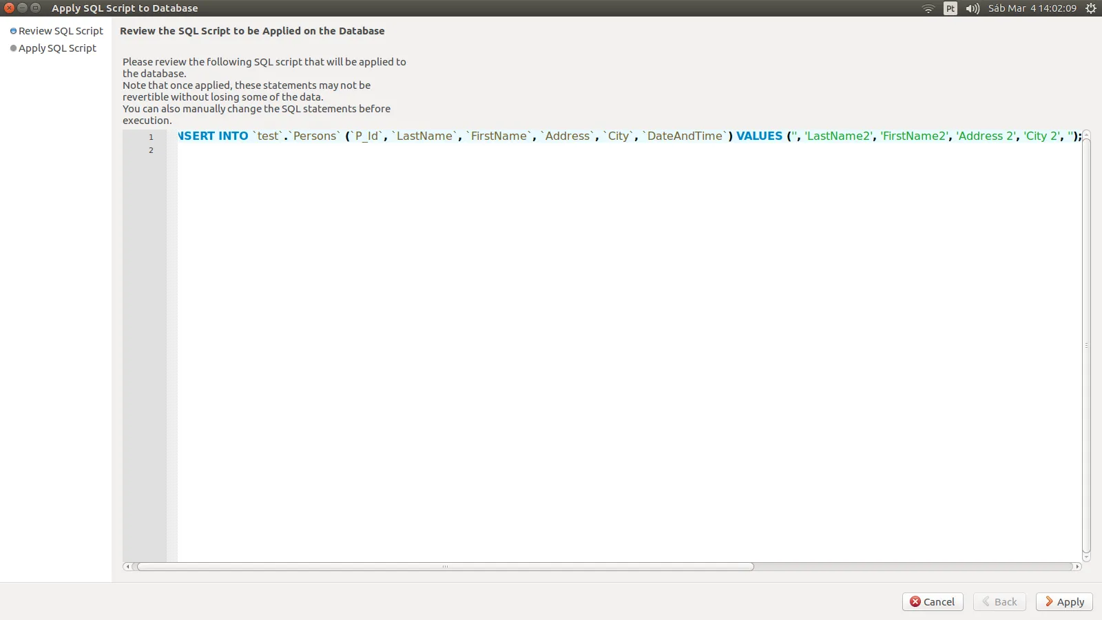 SELECT * FROM test.Persons;