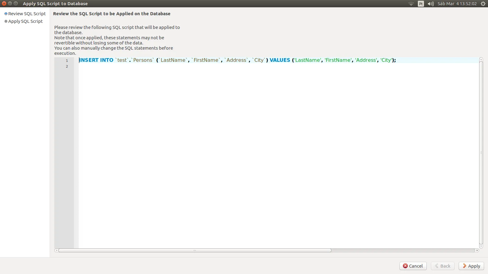 Quanto a perda de dados, faça backup por garantia, mas alguns comandos não afetam os dados, apenas a estrutura…