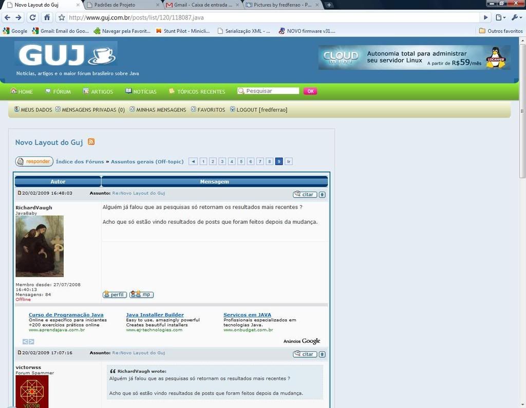 Brincadeiras a parte, ficou muito legal o novo GUJ… Como qualquer outra coisa no mundo, ele está evoluindo sempre! O verde e o rosa (principalmente o rosa) é que não se encaixaram muito bem no novo layout.